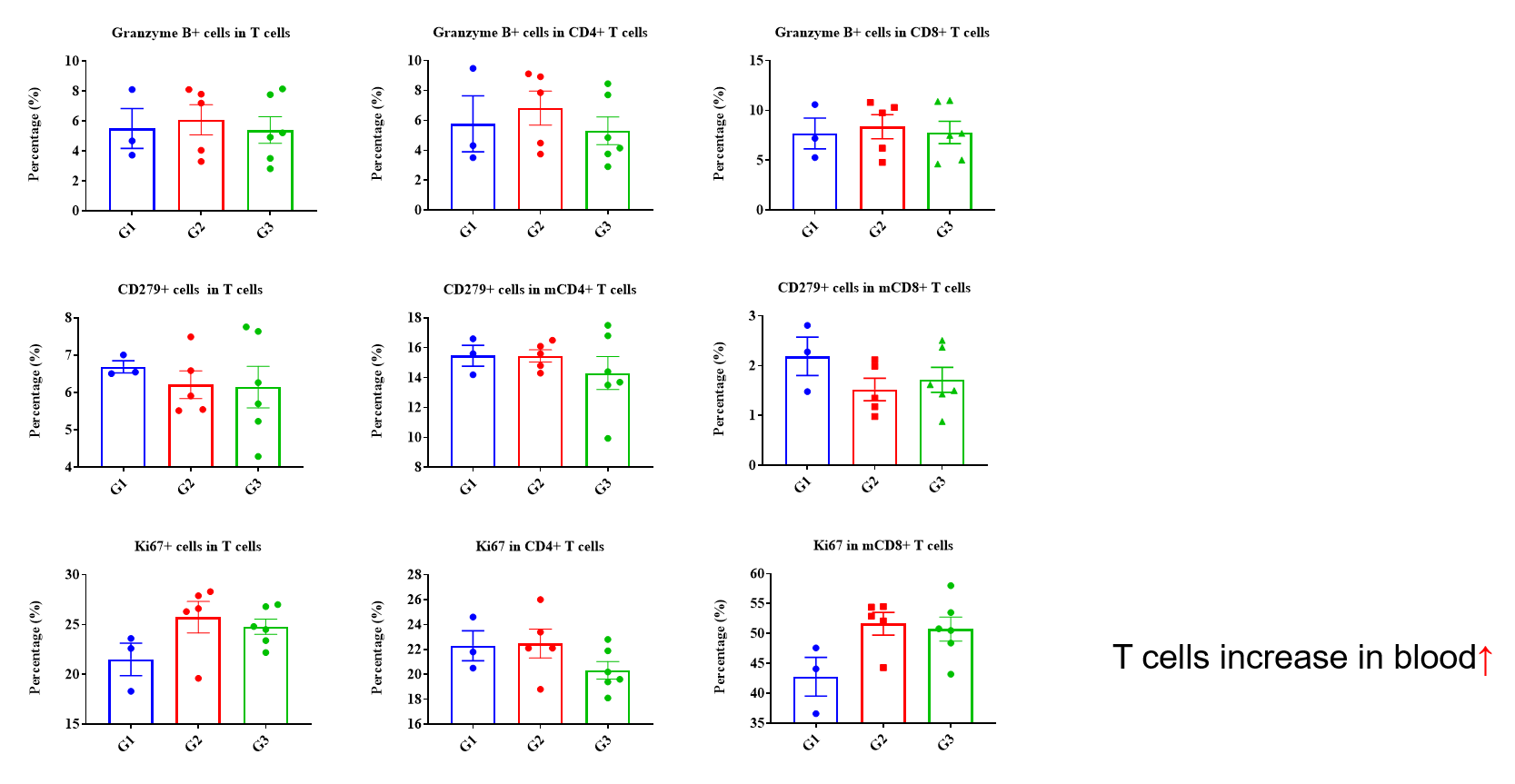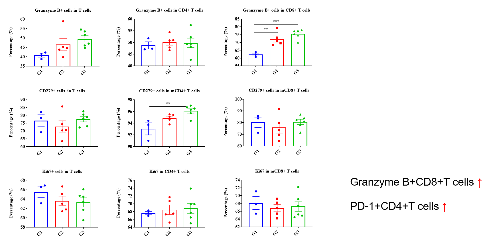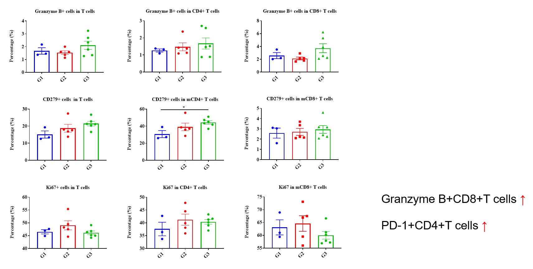 Granzyme B+, CD279+, Ki67+ in T cell Subgroups of Spleen