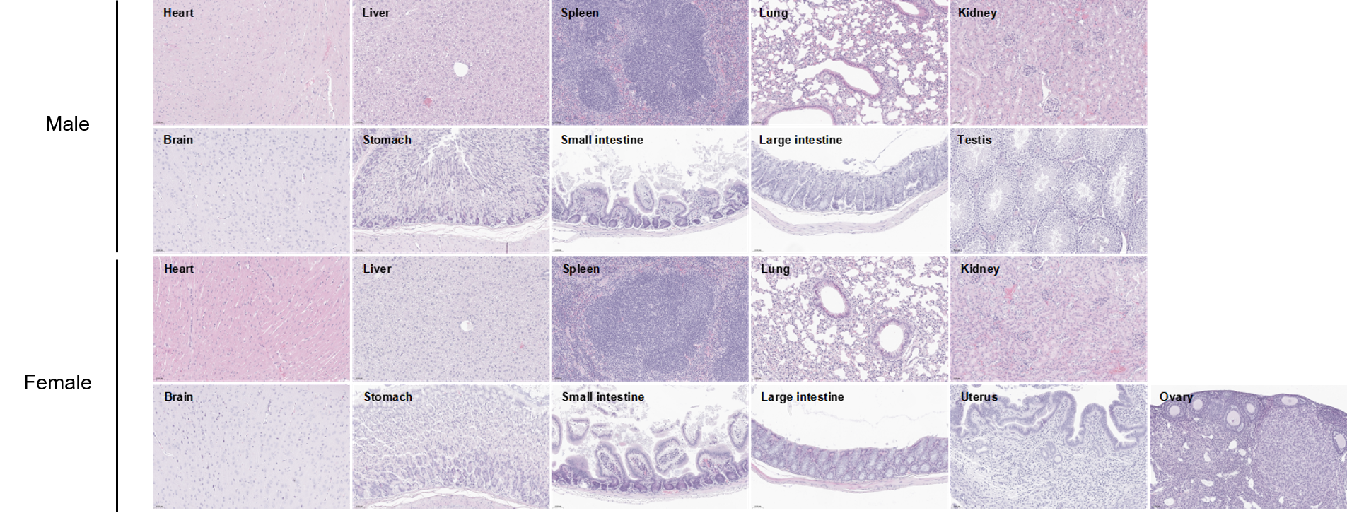 The organs of female C57BL/6JNifdc mice (8-week-old, n=10).