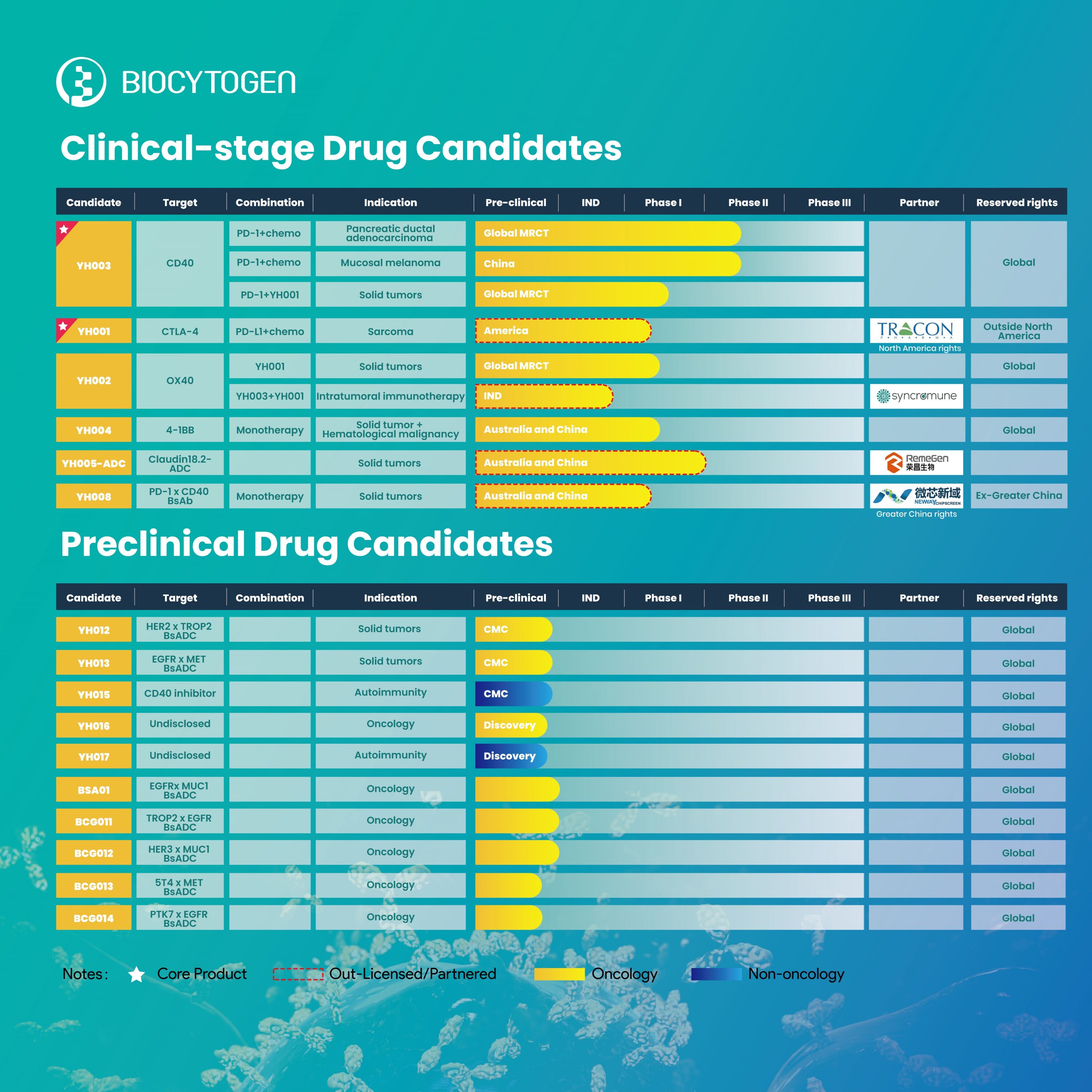 Biocytogen (HKEX: 02315) is a global biotechnology company that drives the research and development of novel antibody-based drugs with innovative technologies. Using its proprietary RenMabTM/RenLite®/RenNano® mice platforms for fully human monoclonal, bispecific/multispecific antibody and nanobody development, Biocytogen has integrated its in vivo drug efficacy screening platforms and strong clinical development expertise to streamline the entire drug development process. Biocytogen is undertaking a large-scale project to develop first-in-class and/or best-in-class antibody drugs for more than 1000 targets, known as Project Integrum (RenMiceTM HiTS Platform). As of December 31, 2022, 34 therapeutic antibody co-development/out-licensing/transfer agreements and 17 RenMiceTM licensing agreements have been established worldwide, including several partnerships with multinational pharmaceutical companies. Biocytogen's pipeline is comprised of 11 core assets, with partnerships established for 4 out of 6 total clinical assets. Headquartered in Beijing, Biocytogen has branches in Haimen Jiangsu, Shanghai, Boston, USA and Heidelberg, Germany. For more information, please visit http://en.biocytogen.com.cn.