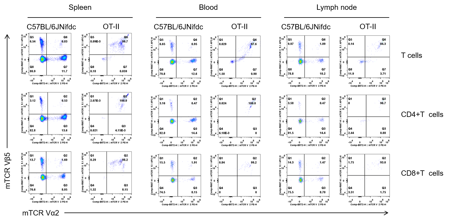 • The mouse TCR Vα2+TCR Vβ5+ cells were exclusively detectable in homozygous OT-II mice.